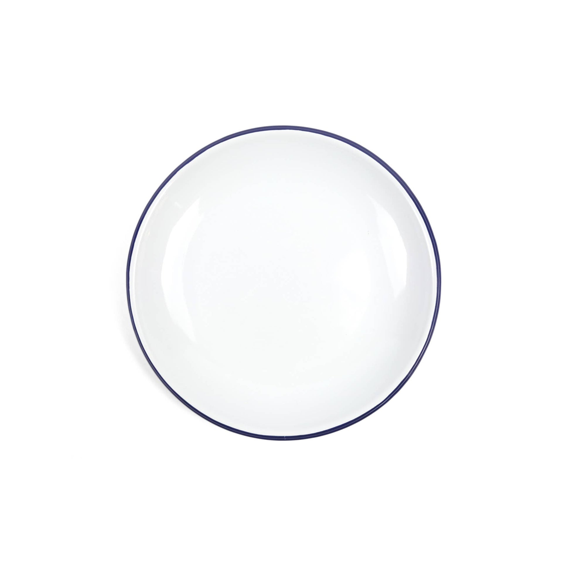 The enamel dinner coupe plate is made from heavy gauge steel with a slightly sloped rim. Pair with the small coupe plate to complete your tablescape.